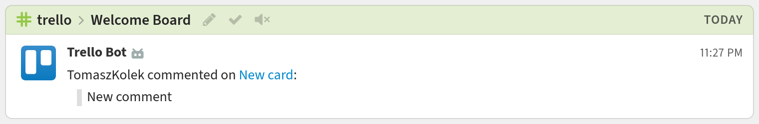 zulip-trelloscript in a terminal, after replacing the all caps arguments with the values collected above and the generated URL above.python zulip_trello.py --trello-board-name TRELLO_BOARD_NAME \ --trello-board-id TRELLO_BOARD_ID \ --trello-api-key TRELLO_API_KEY \ --trello-token TRELLO_TOKEN \ --zulip-webhook-url "GENERATED_WEBHOOK_URL"Note: Make sure that you wrap the webhook URL generated above in quotes when supplying it on the command-line, as shown above.